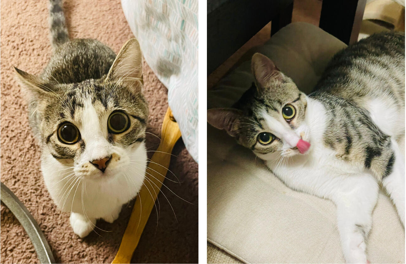 fav things: obsessed with treats and being spoiled with human food... loves cuddling and licking people